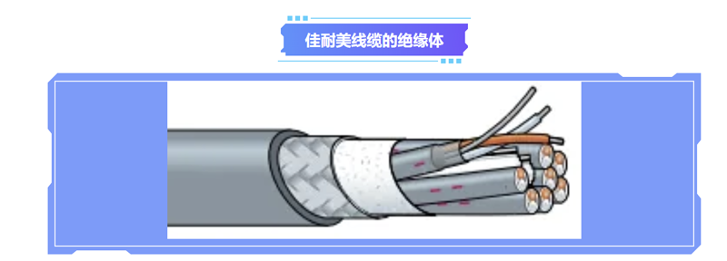 佳耐美使用特别配方的化合物做绝缘体,使电容减少,高频损耗减少,并能预防高电压击穿。绝缘材料经过放射线处理,交联更好,防水能力更强,低温时亦保持柔软。与普通聚乙烯相比,放射线处理过的聚乙烯(交联聚乙烯)耐热性也特别好。焊接时,佳耐美绝缘体不回缩,不流淌,不炭化,这可以在节省工作时间的同时获得更可靠的连接。