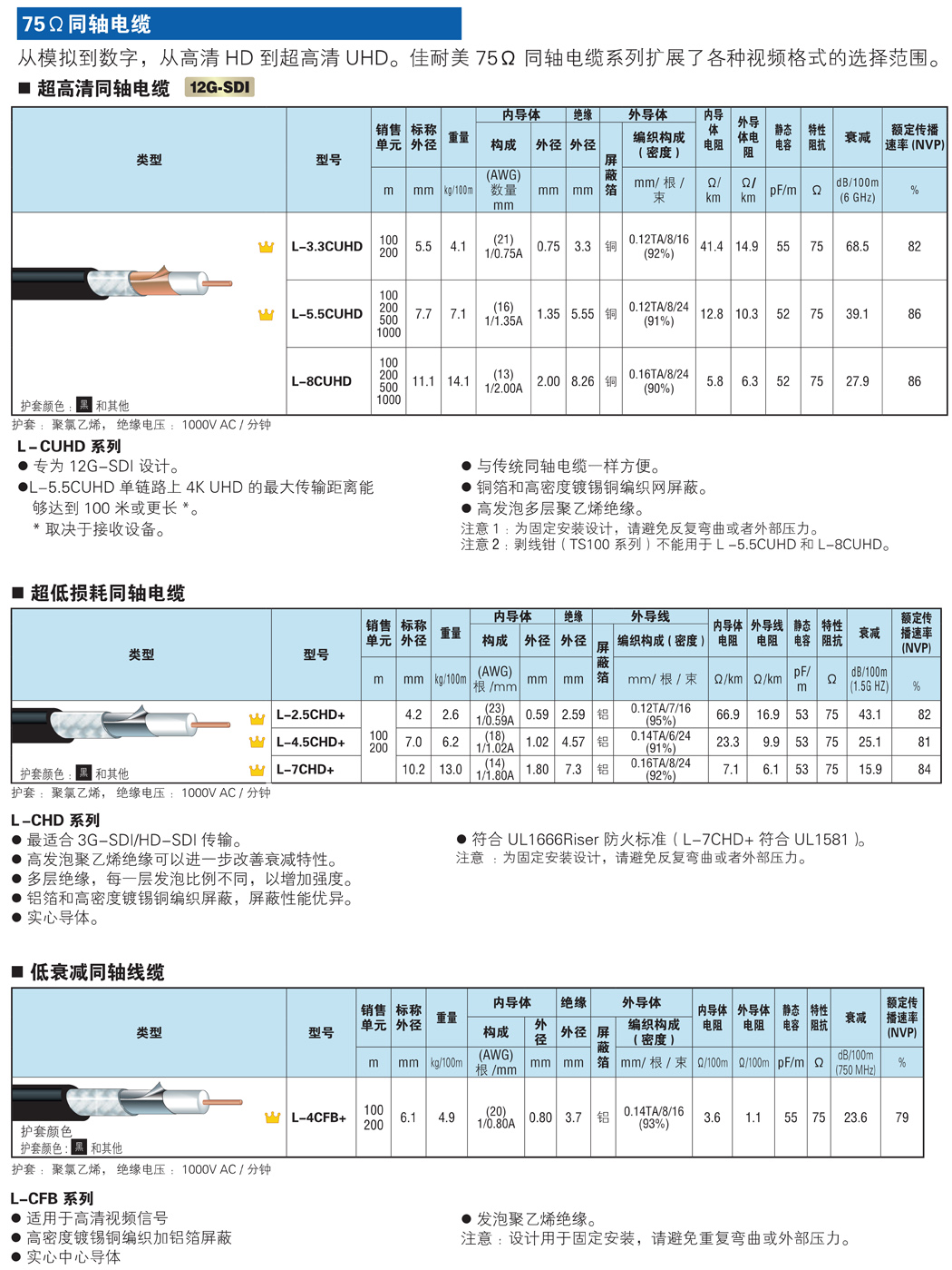 75Ω 多信道同轴电缆